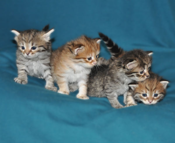 Just recently, Quinta's kittens from litter D turned 2 months old. Surprisingly this litter is very close in personality and behavior; the differences between the kittens are only slight.